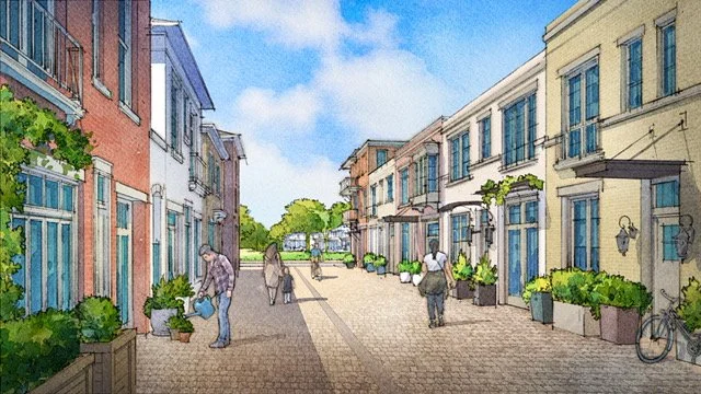 Working with developer clients we have co-designed new neighborhoods and whole communities that are walkable, green, and mixed-use. Wheeler District in Oklahoma City is a growing new community that has involved many committed people working hard, but the design began with a conversation and a sketch Jason made for Humphreys Company in 2014 and the conversation and sketching continues today.